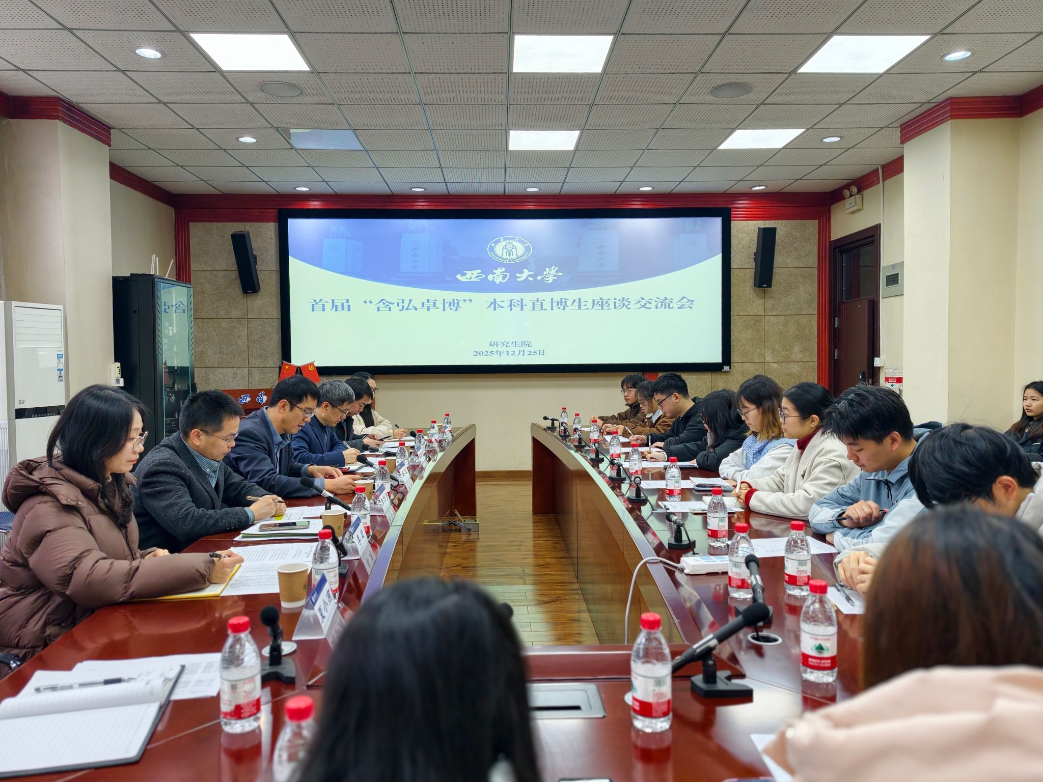 12月25日上午,学校在文俊楼208会议室组织召开首届“含弘卓博”本科直博生培养座谈交流会。党委常委、副校长邱江出席会议并讲话。研究生院、党委学生工作部等相关职能部门负责同志参加会议。会议由研究生院副院长李云伍主持。