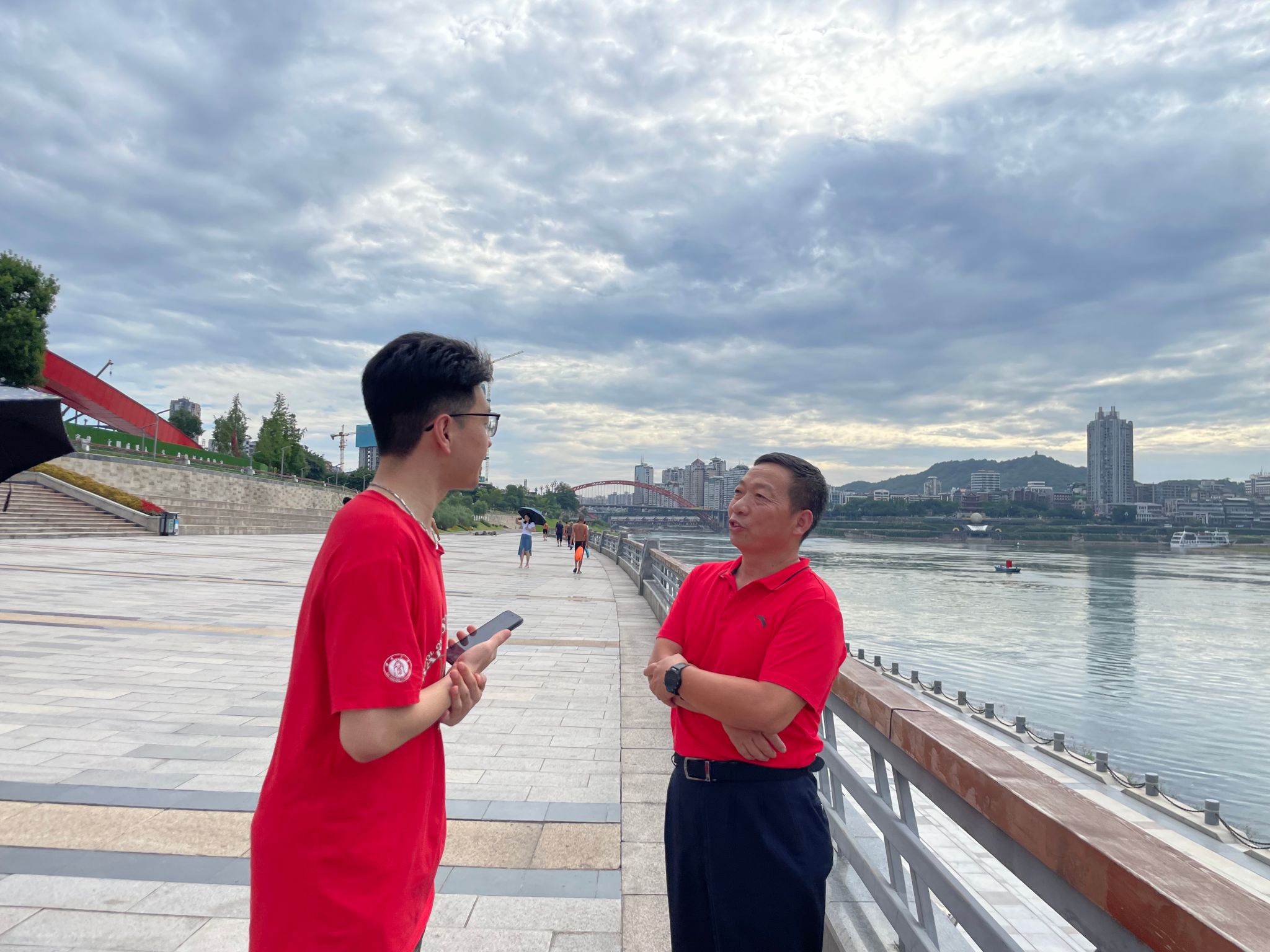 习近平总书记指出:“保护好长江流域生态环境,是推动长江经济带高质量发展的前提,也是守护好中华文明摇篮的必然要求。”带着总书记的嘱托,实践队来到宜宾三江口进行实地调研,感受三江口区域从大量老旧院落和破产企业、侵占岸线严重,到绿草如茵、步道蜿蜒、江水清澈的巨大变化。