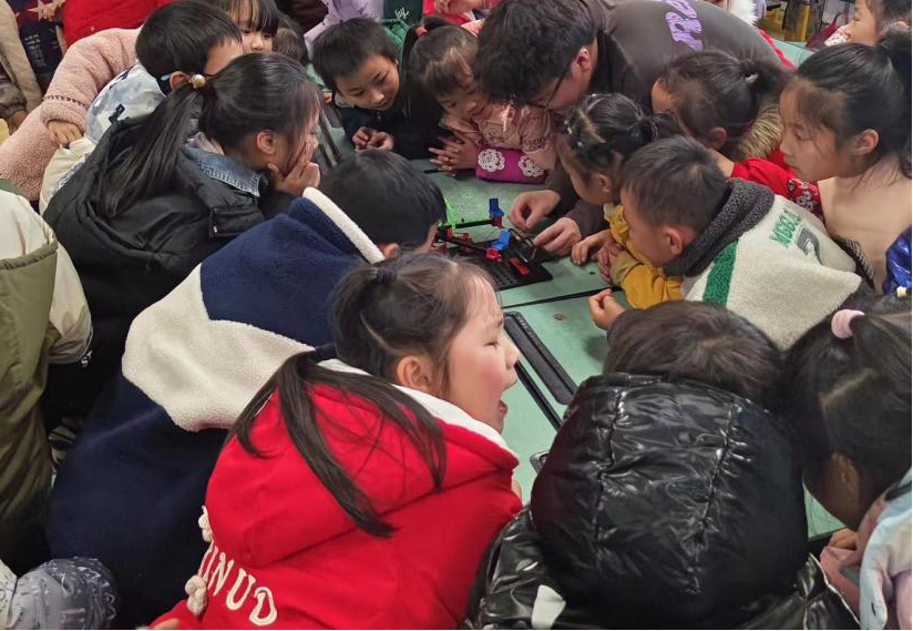 随后,工程技术学院的队员拿出了从实验室带来的慧鱼积木,帮助小朋友培养动手能力以便更好地了解机械知识原理。慧鱼积木原本是西南大学工程技术学院本科生的课程教具,对小朋友们来说拼装出成品是有一定困难的。但是,在实践队队员的细心指导和带领下,一个个成品顺利拼装并展示在桌面上,现场发出阵阵惊叹和欢声笑语。
