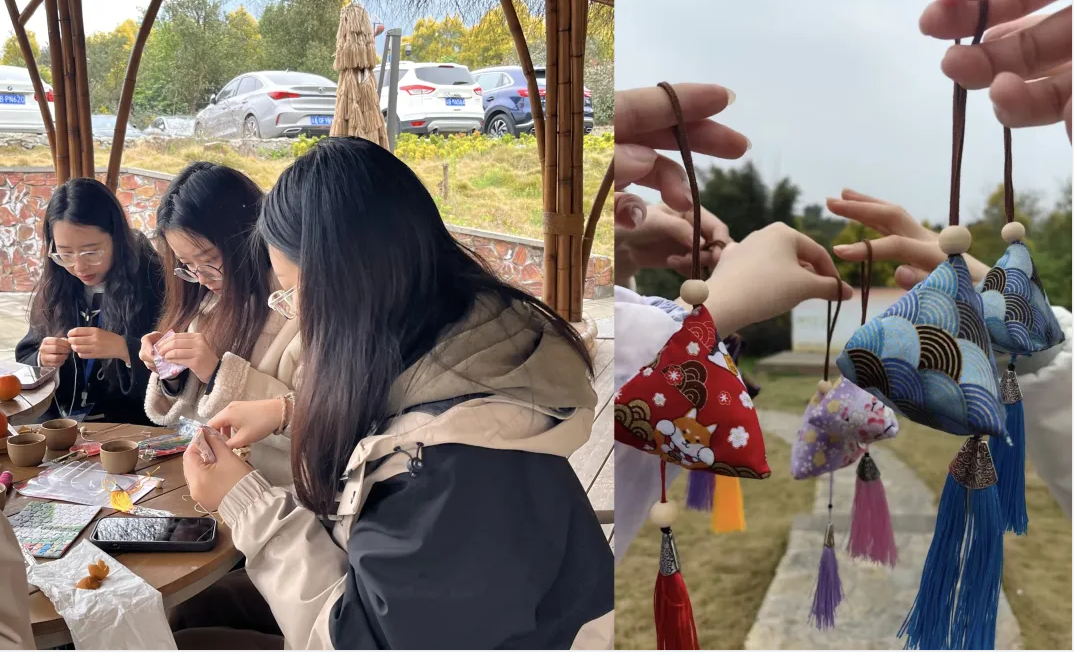 乡村振兴,教育先行。在东升村百年乡建展览中,大家通过了解北碚乡村建设和东升村的乡村实情,明晰了东升村百年乡村建设历程以及西南大学与乡村建设的渊源,切身体会到以教育之力带动乡村可持续发展的实践案例。在学深悟透中明初心,同学们积极参与了以乡村振兴为主题的“美丽东升拼出来”和乡村振兴知识竞答等素质拓展活动,感悟到新乡村建设者坚守的“农心”和一丝不苟、精益求精的“工匠精神”。乡村文化是一个村子最具辨识度的名片,大家体验了围炉煮茶和制作香囊活动中所蕴含的东升村文化底蕴,所带走的文化产品不仅是物质产品,更是独属于东升村的精神文化体验。